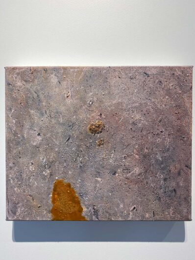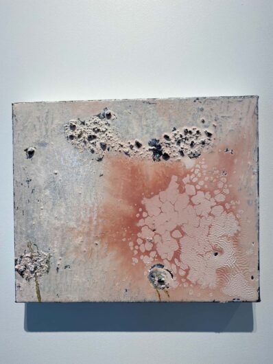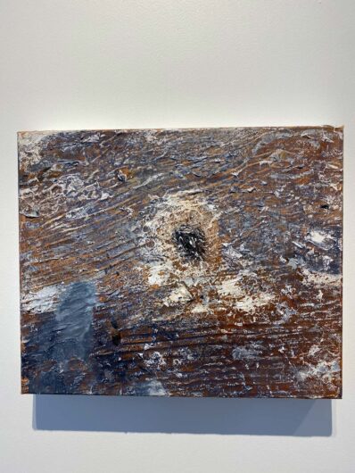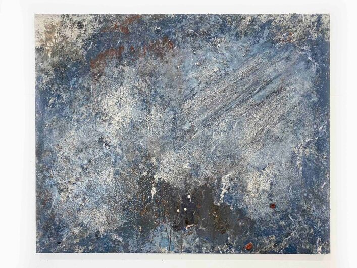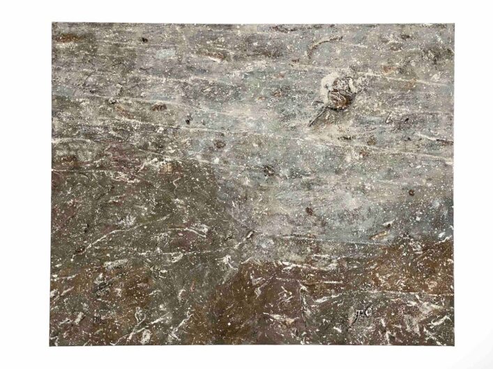 In this third (and final) series of works on this subject, all references to life sustaining water, however oblique, are gone and the primal mud has turned to apocalyptic sludge. The scarified surfaces are etched and incised, wounds that seep from fissures beneath the skin or just openly bleed. In these works we are reminded of the remnants (either human, animal or vegetable) of life in our threatened natural world. Neil Fettling.
