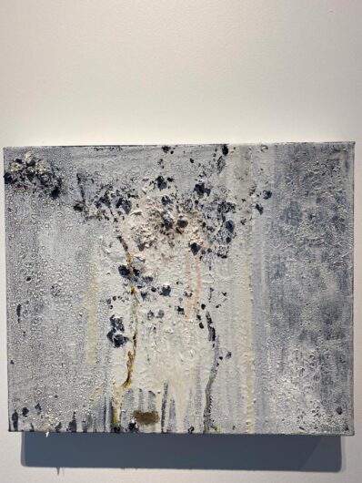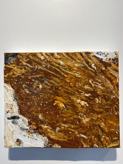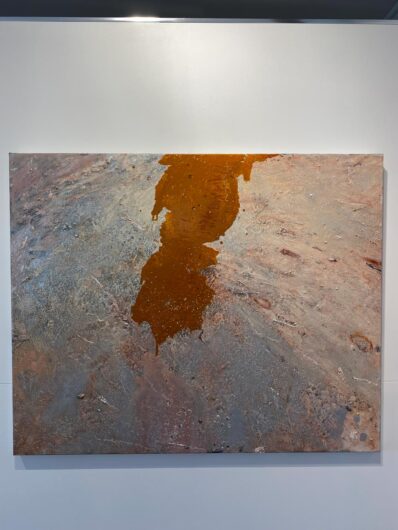 This series of paintings are based on the Mallee and its ecological sustainability and is viewed through the region’s boinkas (salt-pan or shallow groundwater depressions) that, occasionally brim with water, ‘but generally (are) dry and glittered with salt rime and edged with gypsum shards and muddy sand’ (Carter, 2010, 71).